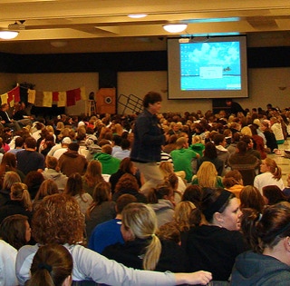 Cape Cod Community College sponsored a Clothesline Project display and lecture in April 2012. CP founder, Carol Chichetto, is shown here speaking at the event to several classes at the College.