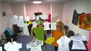 Please send large full-size images of individual shirts with legible messages plus an overall project photo. Please include basic facts who/when/where.